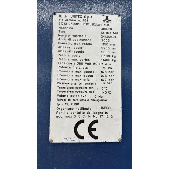 Anno di costruzione 2002 Temperatura max 143°C.